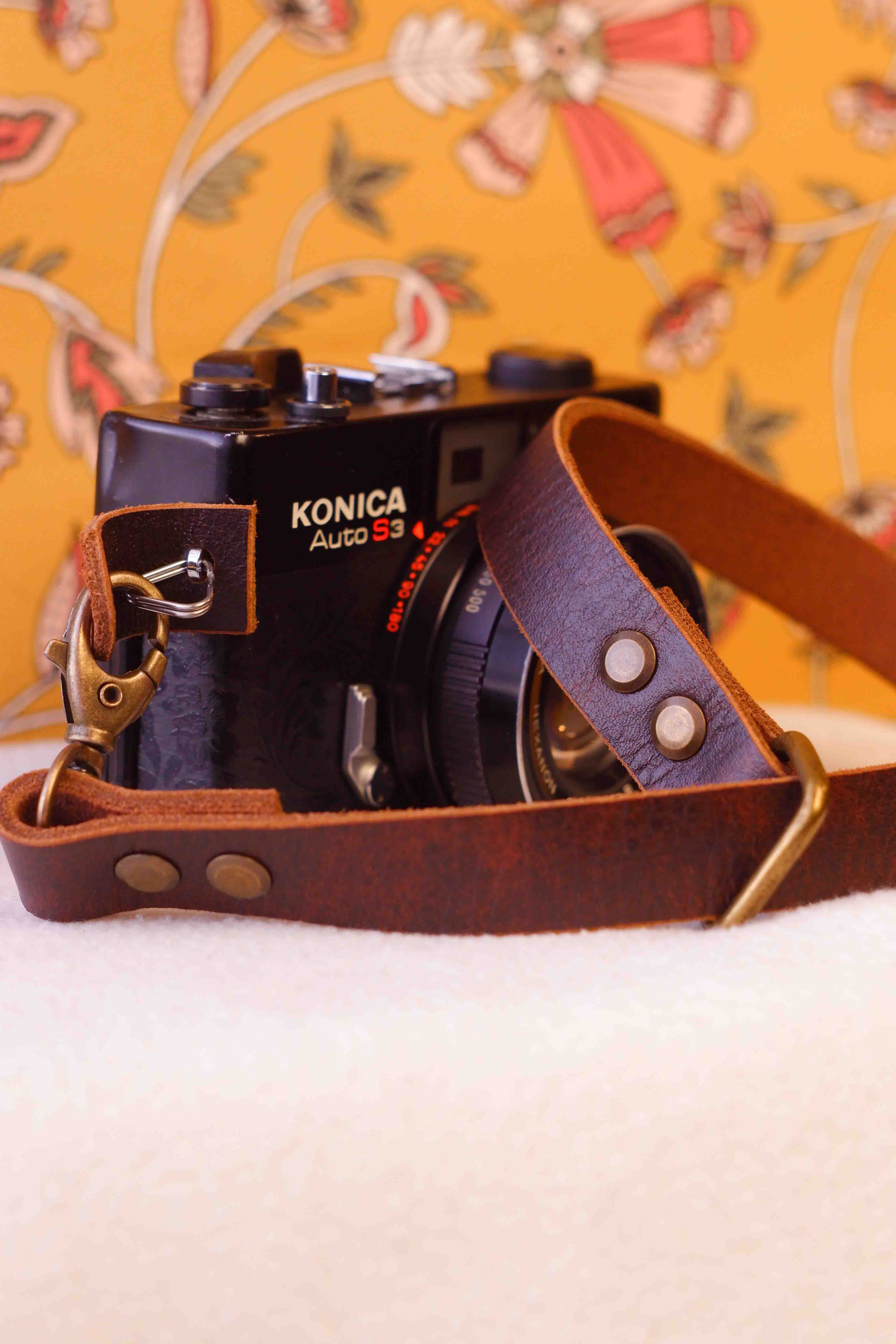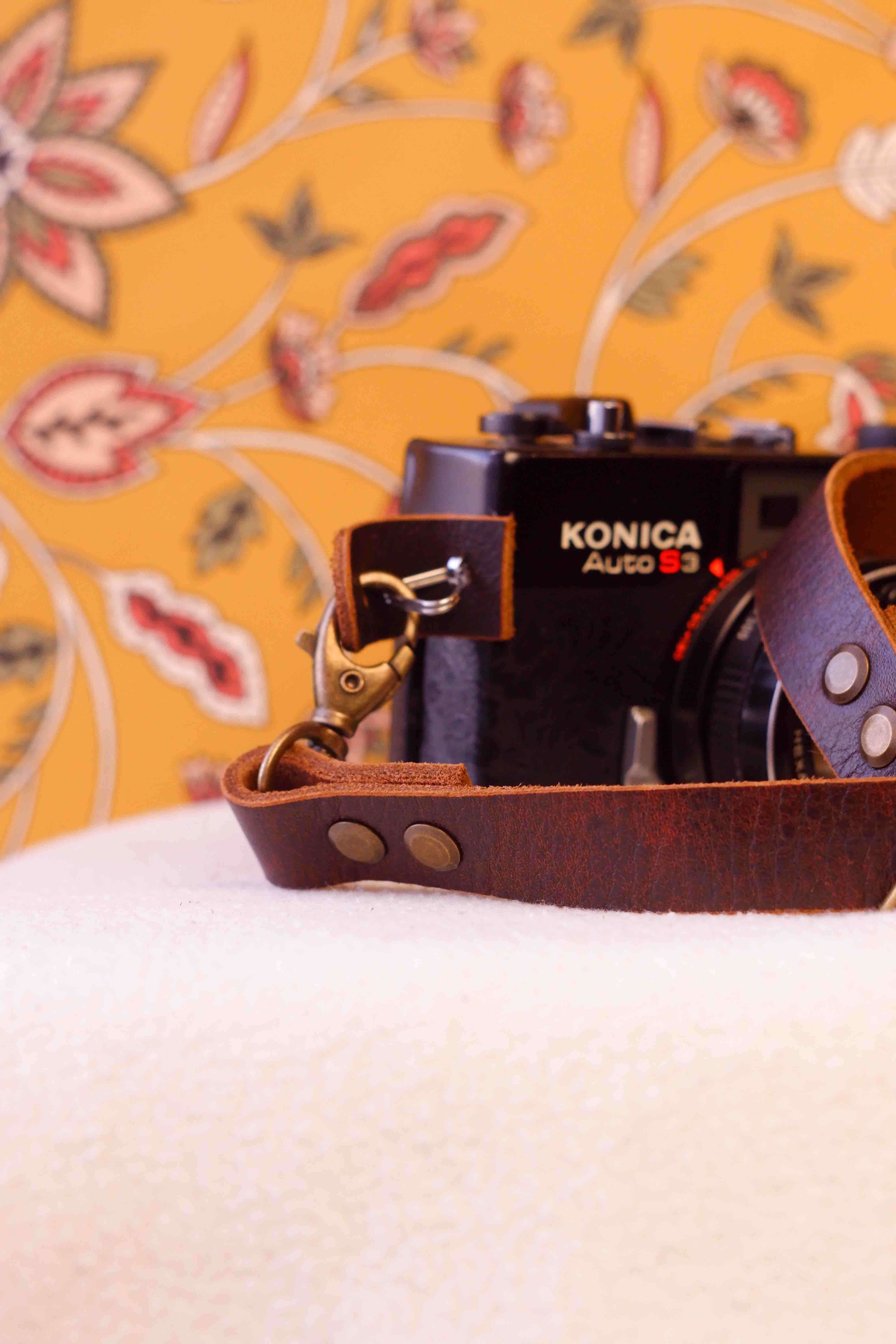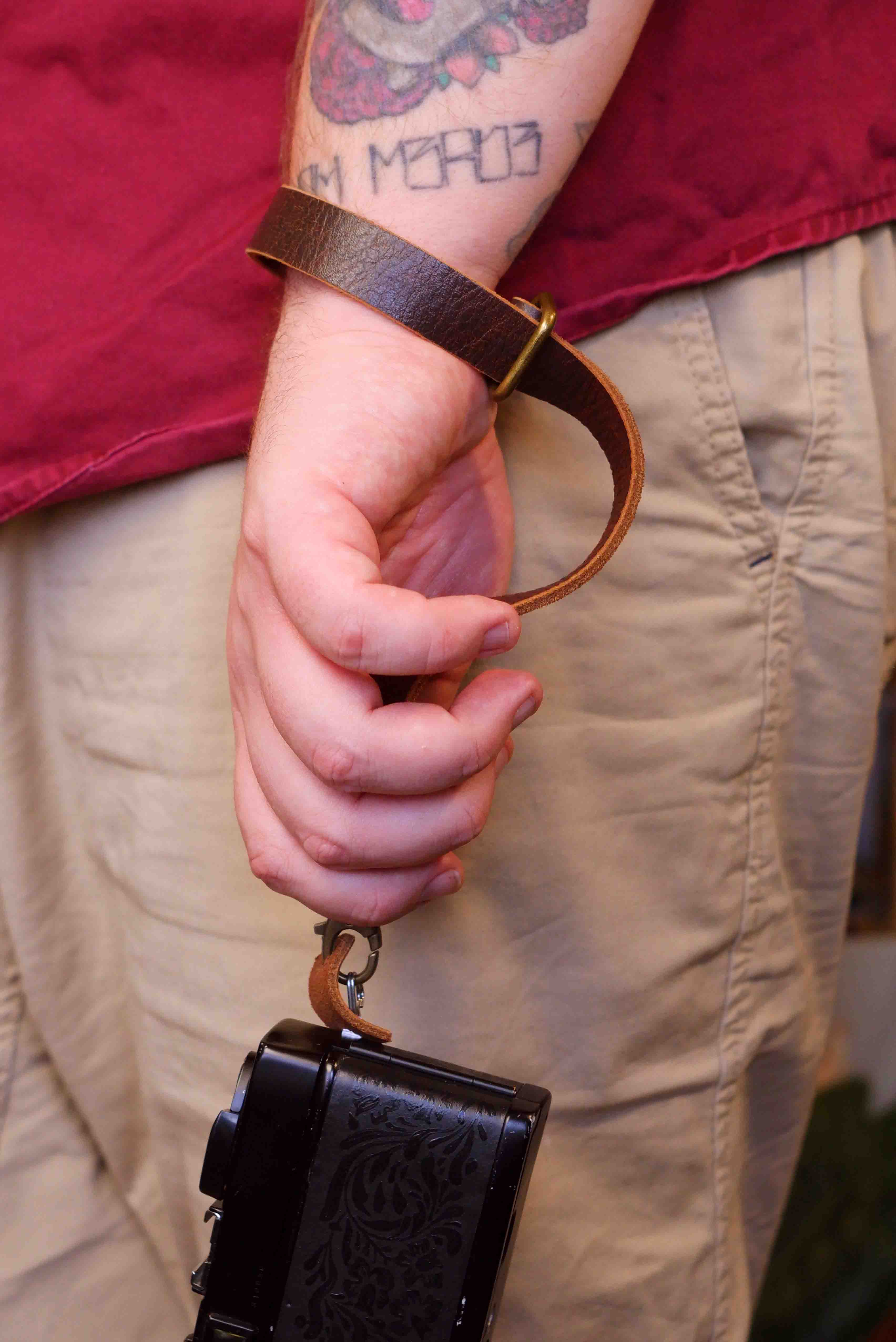 Handmade camera wrist strap crafted from full grain Crazy Horse leather, designed for comfort, durability, and everyday use.
