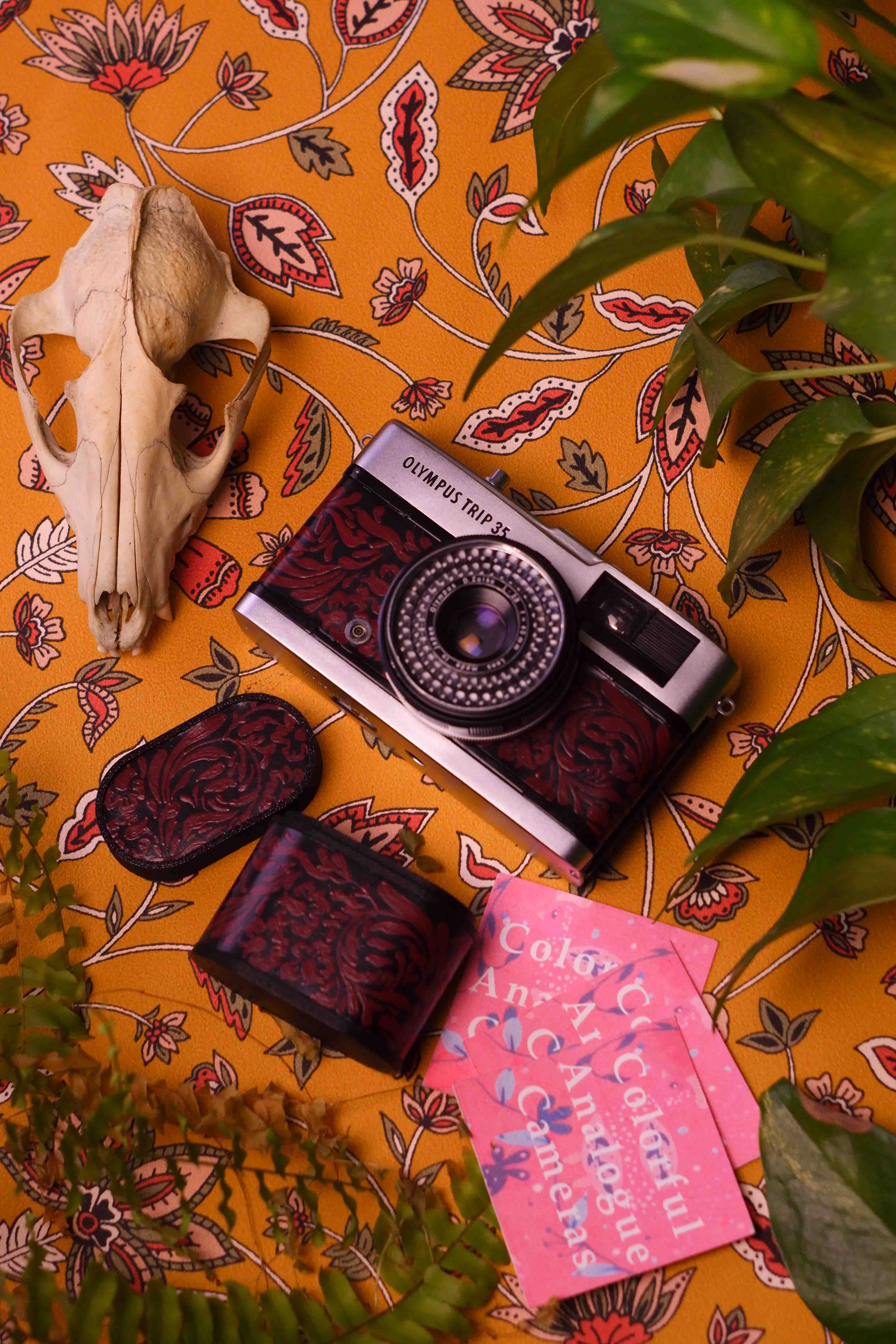 Olympus Trip 35 – Film Camera with Custom Painted Leather & 3D-Printed Film Case
