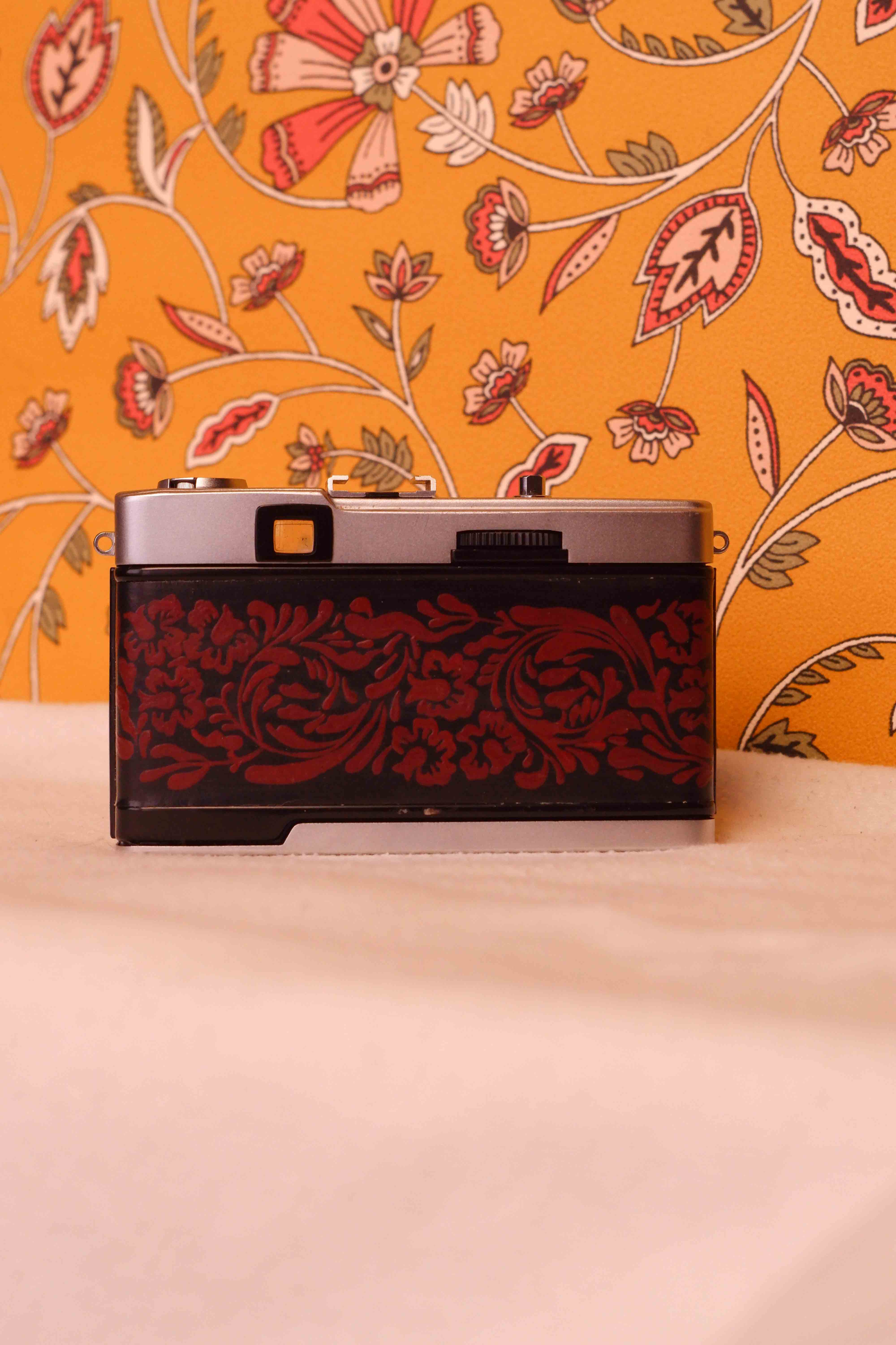 The Olympus Trip 35 is a beloved 35mm point-and-shoot camera, known for its reliability, compact size, and timeless design. This particular camera has been refreshed with custom painted replacement leather, giving it a unique artistic character while preserving the classic look of this iconic model.